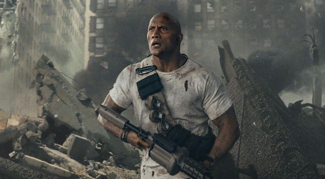 Oltre all’annuncio di Dwayne Johnson, sono state pubblicate anche due nuove immagini tratte da Rampage: nella prima vediamo il protagonista nel bel mezzo di una città rasa al suolo, mentre guarda davanti a sé impugnando un’arma davvero enorme; il secondo scatto vede The Rock al fianco di Naomie Harris, anche qui in una scena tutt’altro che paradisiaca.