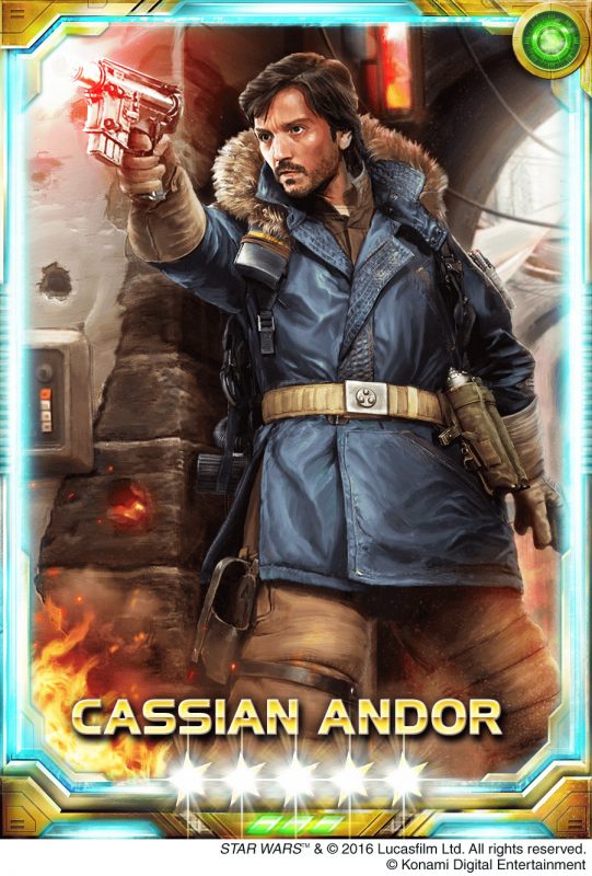 Annunciate le nuove carte Star Wars distribuite da Konami Digital Entertainment. Il celebre titolo mobile Star Wars: Force Collection si arricchisce di un nuovo set di carte ispirato a Rogue One: A Star Wars Story e che include le carte “5-stelle” del Capitano Cassian Andor e di Darth Vader.