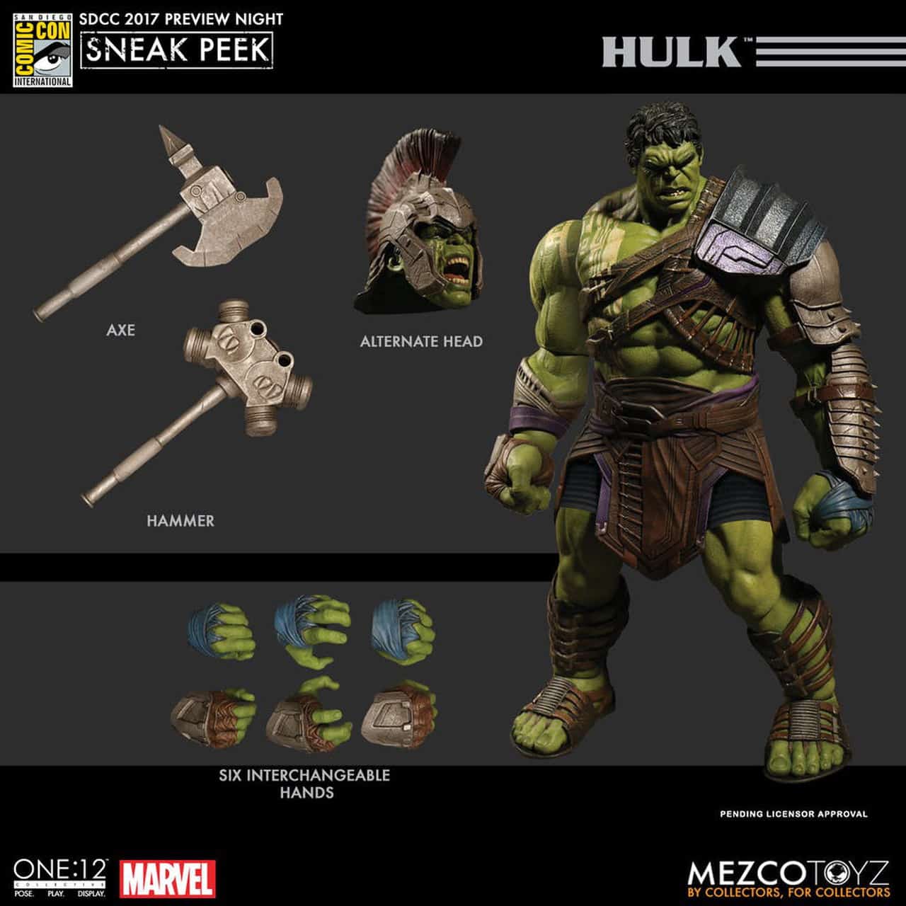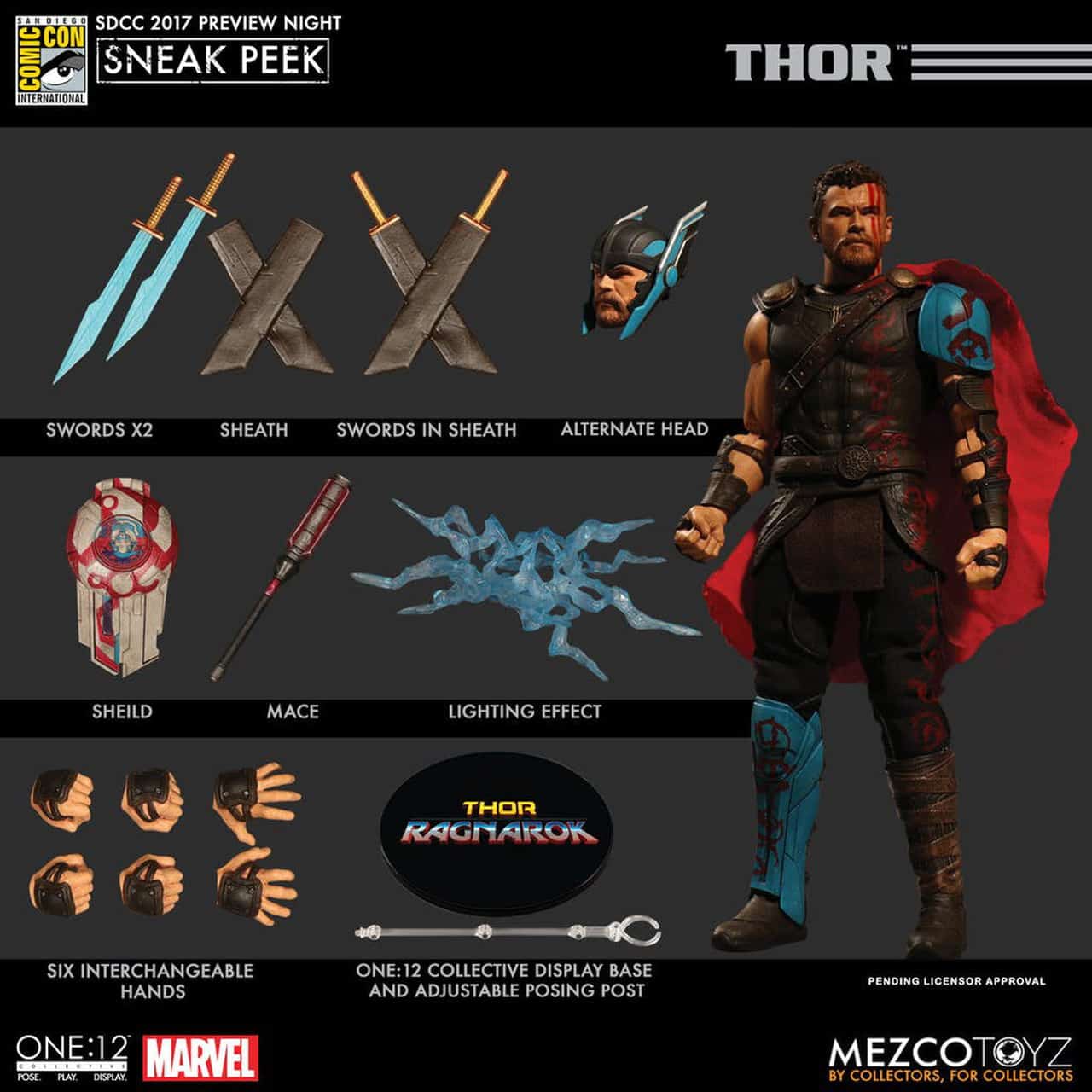 Dopo qualche spoiler su Thor: Ragnarok il San Diego Comic-Con 2017 riserva ai fan Marvel alcune nuove action figure targate Mezco che mostrano i personaggi di Thor e Hulk con i vari accessori che li caratterizzeranno nel film diretto da Taika Waititi.