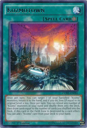 Ed eccoci arrivati al centro di navigazione della Galassia, che trasforma le nostre carte Kozmo in un mix perfetto di spettacolo e potenza. Stiamo parlando della mitica Kozmocittà (in inglese Kozmotown), basata sul pianeta immaginario Coruscant che, nella saga cinematografica, è stato la sede della Vecchia Repubblica e dell’Impero Galattico.