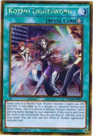 Ed ecco l’arma prediletta dei Cavalieri Jedi, o forse sarebbe il caso di dire, dei Kozmo. Kozmo Spada Laser (in inglese Kozmo Lightsword) offre un equipaggiamento ineguagliabile sia in termini di potenza sia in eleganza alle nostre fantastiche carte. Come direbbe Obi-One Kenobi “Non è goffa o erratica come un fulminatore… è elegante invece, per tempi più civilizzati”