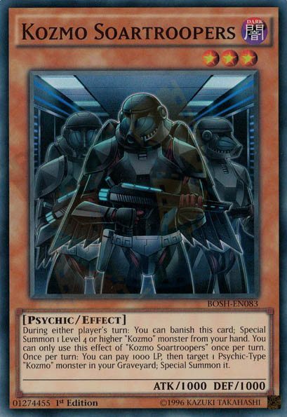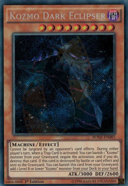 Questa è, senza ombra di dubbio, la punta di diamante di qualsiasi mazzo Kozmo. Un’arma di distruzione di massa, che vanta di una potenza tale da abbattere qualsiasi nemico, e che porta il nome di Kozmo Pianeta Oscuro (in inglese Kozmo Dark Planet), ispirato alla gigantesca stazione spaziale conosciuta come Morte Nera.