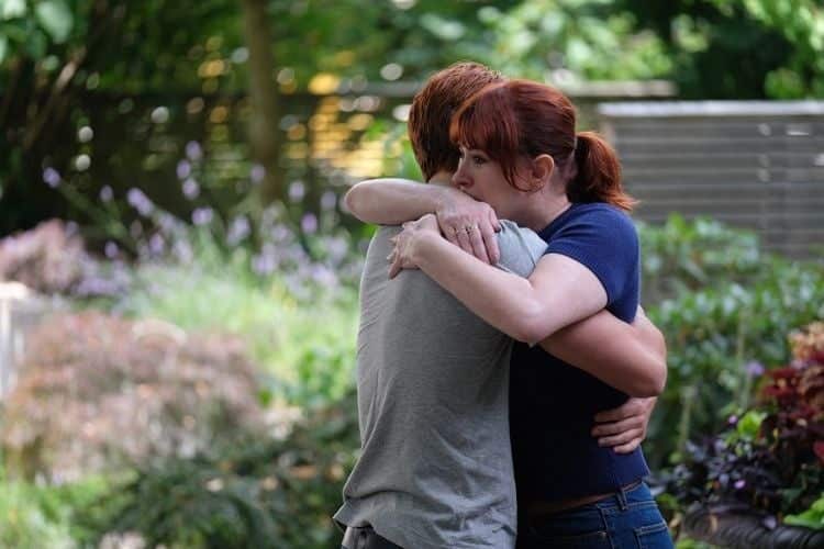 Nelle prime due immagini si possono vedere i protagonisti della puntata radunati insieme all’interno di un giardino. Mentre nell’ultima immagine ci sono i personaggi di Archie Andrews (KJ Apa) e Mary Andrews (Molly Ringwald) che si stringono in un abbraccio commosso.